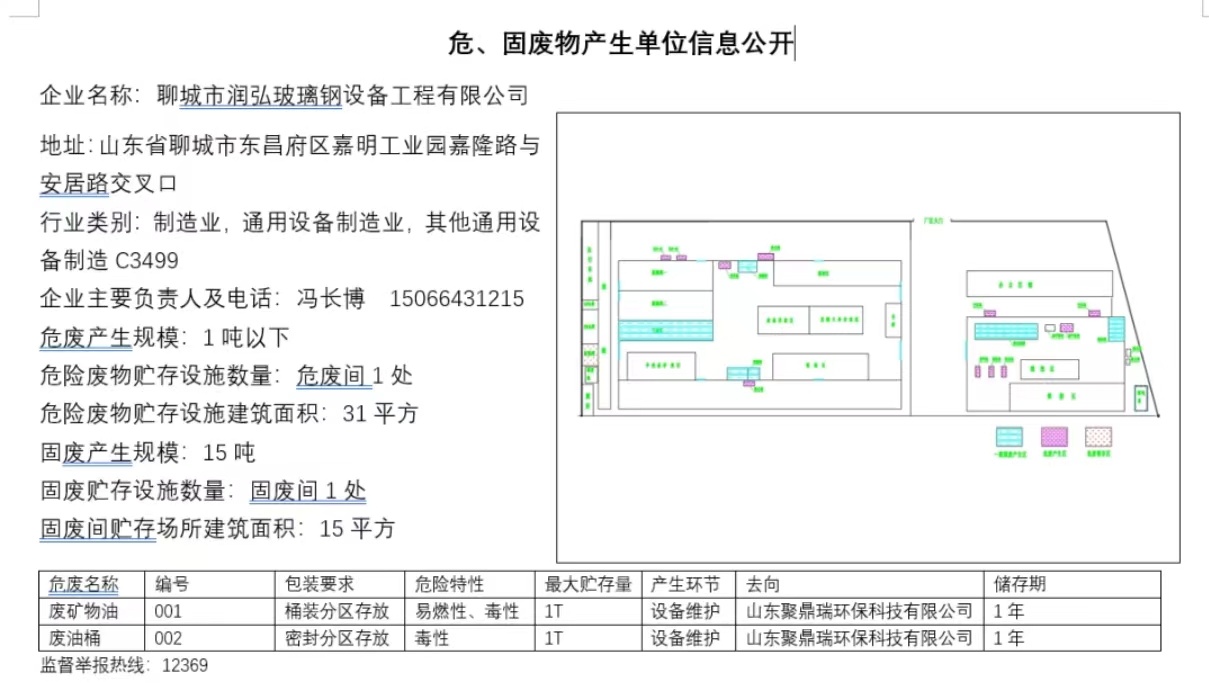 聊城市潤弘玻璃鋼設備工程有限公司危、固廢產(chǎn)生信息