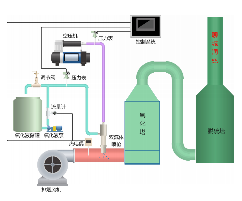 煙氣中NOx的主要組成是NO(占絕大部分)、NO2、N2O5等,NO難溶于水,反應(yīng)活性較差,而NO2、N2O5等是可以溶于水并且與堿性容易進(jìn)行反應(yīng),利用這一原理,選擇一強(qiáng)氧化劑可以將NO氧化成高價態(tài)的NO2、N2O3、N2O5等,且溶于水生成HNO2和HNO3,溶解能力大大進(jìn)步,從而去除煙氣中的氮氧化物。目前來說,主要的強(qiáng)氧化劑主要有雙氧水、臭氧、次氯酸鈉、高錳酸鉀等。